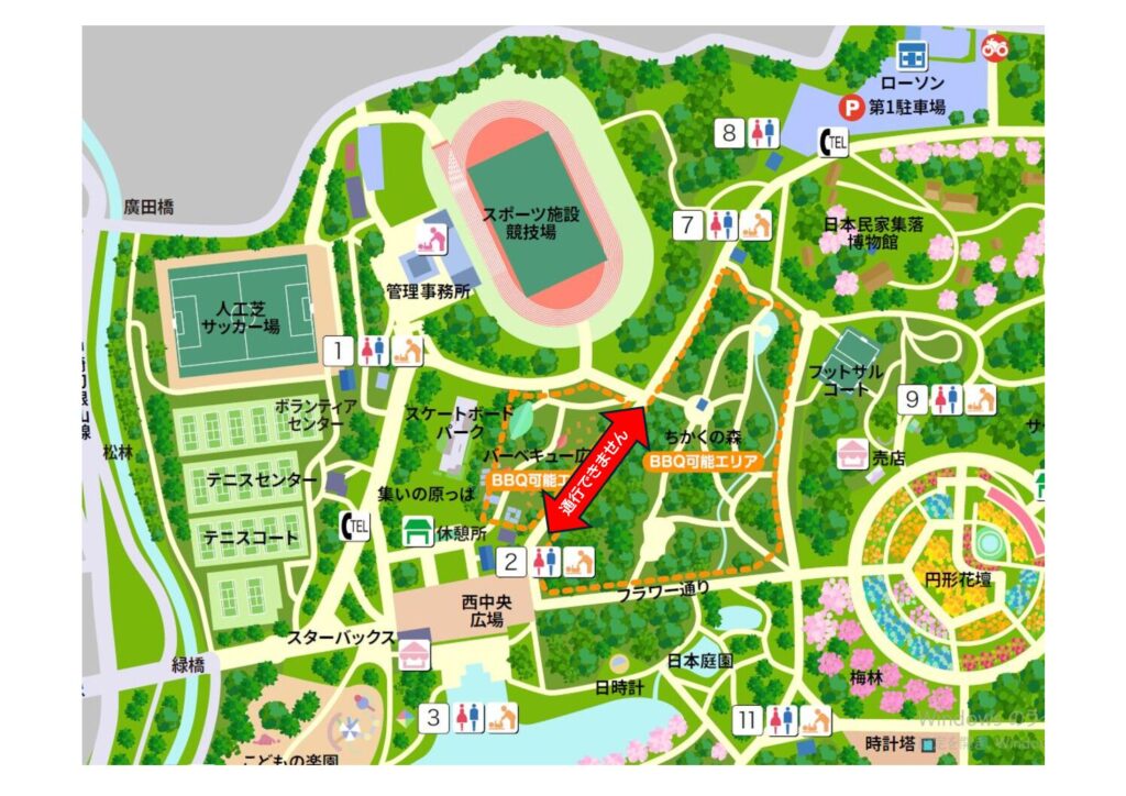 工事中は周辺の園路の通行が出来ません。作業中は安全に配慮いたしますので