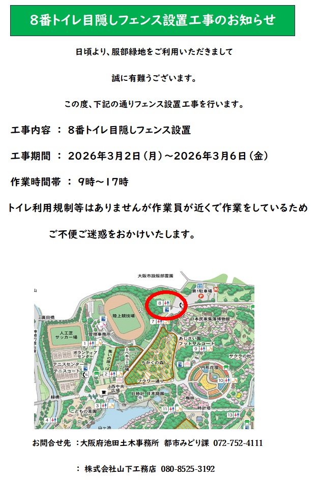 日頃より、服部緑地をご利用いただきまして有難うございます。