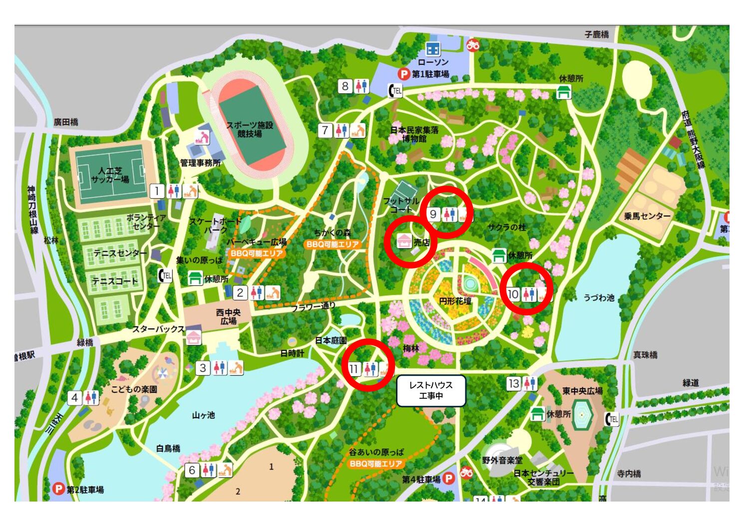 いつも服部緑地にご来園いただきありがとうございます。 レストハウス工事で電気作業を行います。それに伴い、作業中円形花壇周辺のトイレ・自販機が停電しますのでお知らせいたします。電気作業...