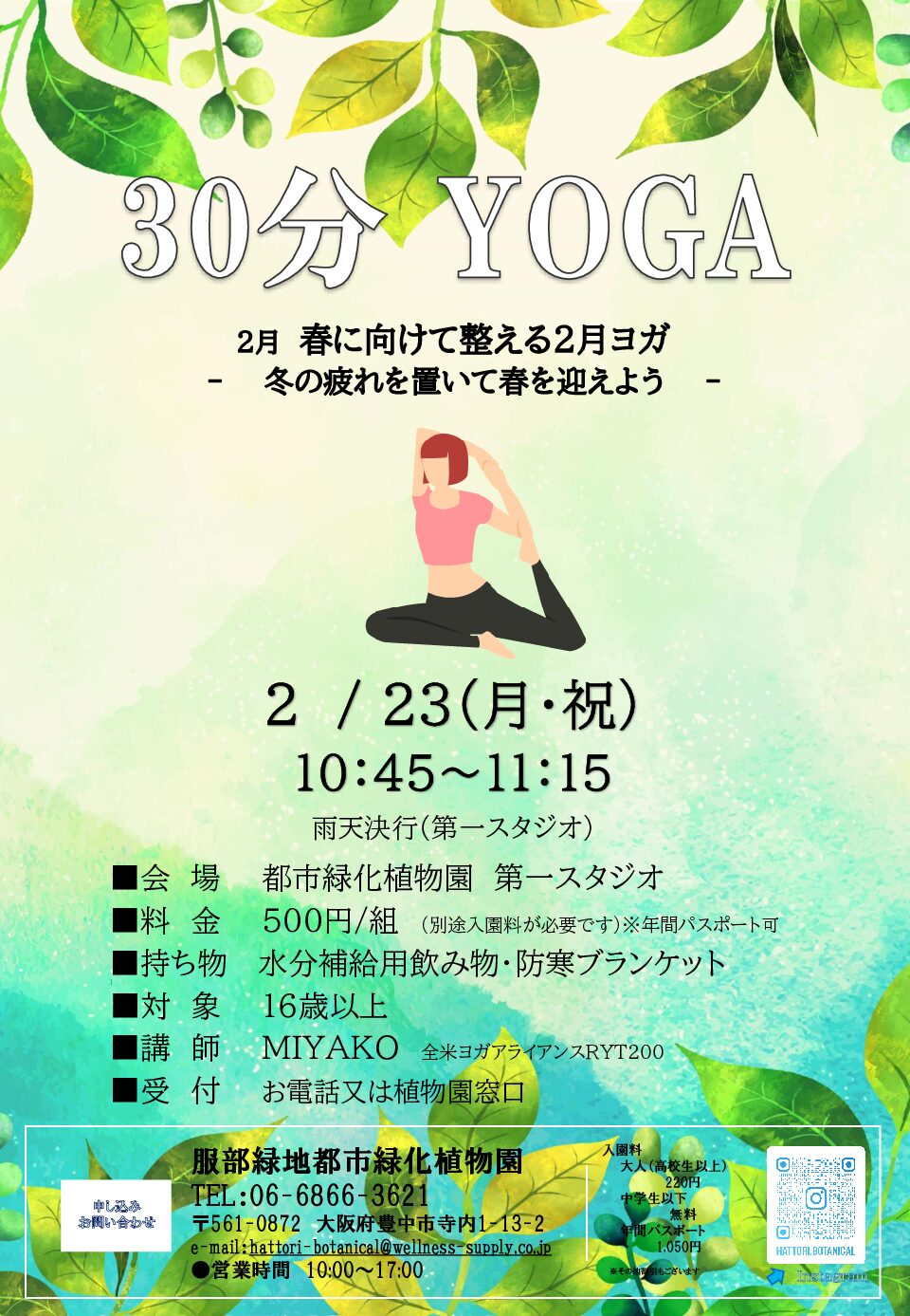 3月から外でのヨガが再開します♪その前に心と身体を整える準備を始めませんか? 2月は室内でできる「30分ヨガ」を開催します。 【日 時】 2月23日(月・祝) 10:30~11 …