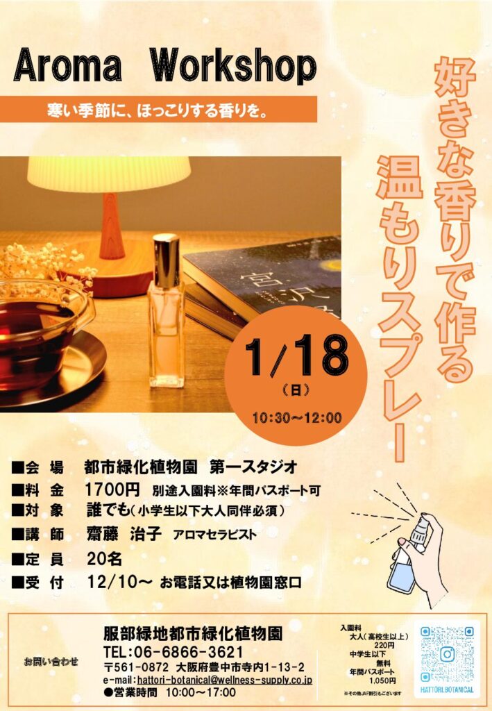 オリジナルアロマスプレー作りのワークショップです。                                          「温もりスプレーを作ろう!」