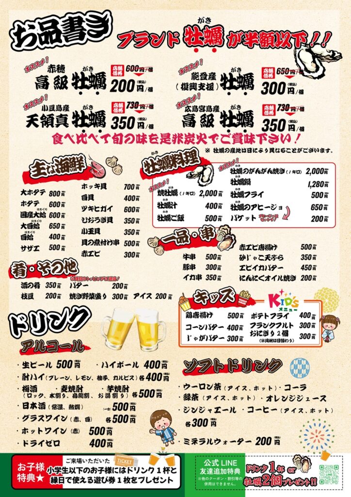 各地のブランド牡蠣がお手頃価格で楽しんでいただけます。