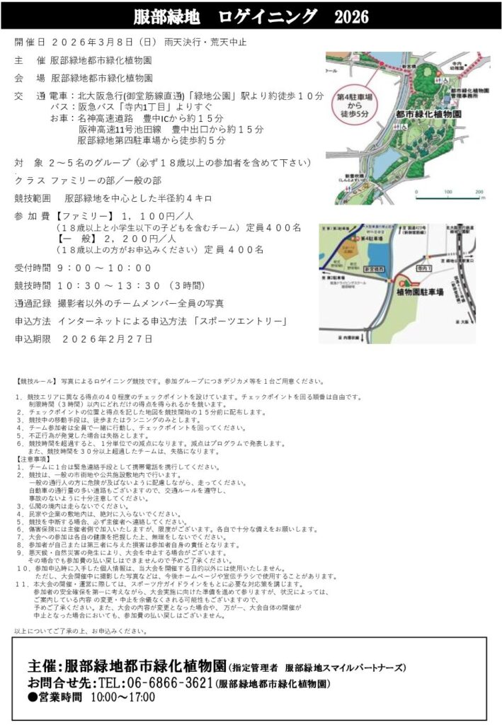 場所:服部緑地を中心とした半径約4キロ ※受付場所:服部緑地都市緑化植物園