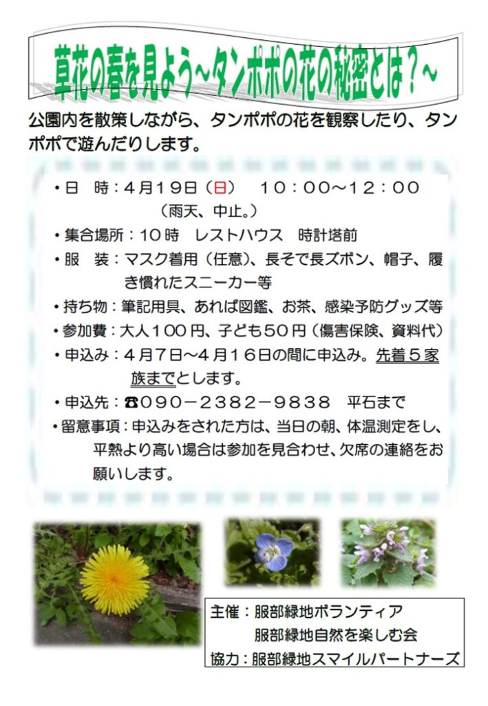 日 時:4月19日(日)10:00~12:00 ※雨天中止