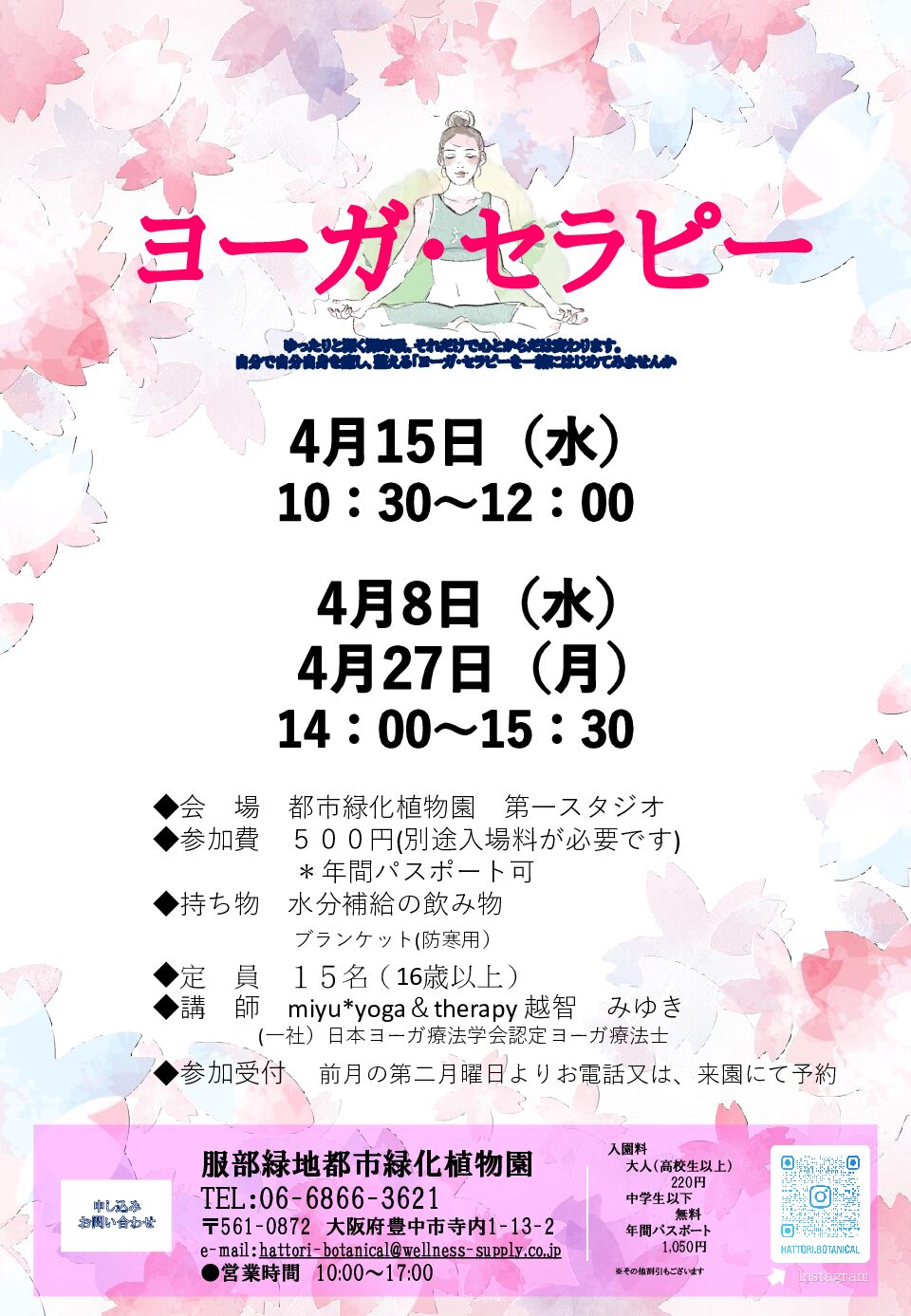 【日 時】 3月7日(土) 11:30~12:30 【会 場】 都市緑化植物園 芝生広場 【参加費】 500円(別途入園料)※年間パスポート可 【講 師】 MIYAKO氏 全米ヨガアライアンスRYT200 【持ち物】 ヨ...